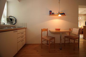 Die Wohnung II hat eine Südostlage und ist 35 qm groß. Sie bietet Platz für 2 Personen. Wohn- und Schlafraum sind getrennt. Im Küchenbereich befindet sich der gemütliche Essplatz. Auch hier ist der Wohnbereich mit einem Laminatboden und das Bad mit WC voll gefliest. Zu der Wohnung gehört ein geräumiger, teilweise überdachter Balkon mit einem einzigartigen Blick auf das “Ahrenshooper Holz” (siehe Foto). Die Wohnung ist sonnig und sehr ruhig gelegen.